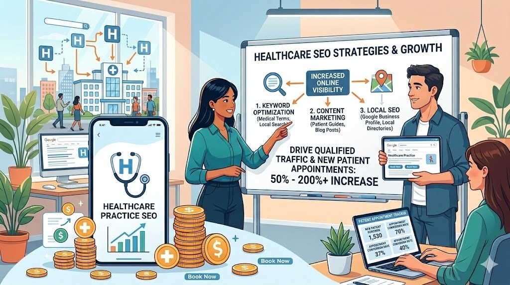 SEO strategies are key for healthcare practices. They boost visibility, build trust, and attract the right audience online. Keyword optimization, content creation, technical fixes, and local SEO boost your online presence.